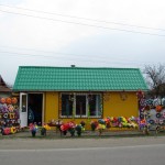Дорогою до Коломиї неприємно вразила велика кількість магазинів ритуальних послуг (на фото) – якщо є пропозиція, значить є і попит… Долаючи черговий затяжний підйом до Яблунова вирішив зробити привал і оглянути єдиний бігбогд проекту Велокосів (на фото). В принципі ще тримається, але трохи вигорів та подерся – було би добре його при нагоді якось оновити. Не дуже весело і від того, що на Покутті та Гуцульщині пішла масова мода на перекриття церков кольоровою бляхою. Дуже сумно, що люди не розуміють, яке це рагульство і витрачають купу власних грошей на руйнування вигляду пам’яток архітектури. Варто вводити якусь заборону від держави на зототу і яскраво-сину бляху, бо це просто жахливо…